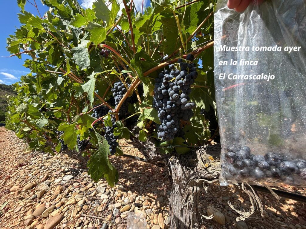 Durante estos días, nuestro equipo técnico recorre nuestras 35 hectáreas de viñedos propios a orillas del Duero, recogiendo cuidadosamente uvas de distintos pagos. Cada muestra nos ayuda a conocer el estado fenológico del viñedo, evaluar la madurez y estimar el grado alcohólico probable.